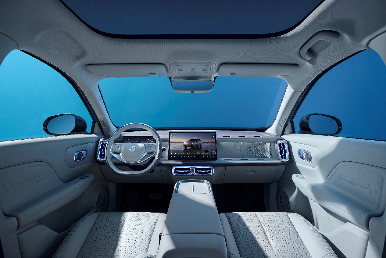 在空间设计方面,零跑B10的得房率高达87.4%,乘员活动空间达到2390mm,远超同级车型。新车还配备了同级领先的1.83㎡星空全景天幕和电动遮阳帘,为用户提供了无垠的视野和非凡的空间感。此外,零跑B10的百变副驾空间设计是其一大亮点,支持DIY拓展,用户可以根据自己的需求自由搭配折叠桌板、手机支架等配件,打造出个性化的多功能空间。