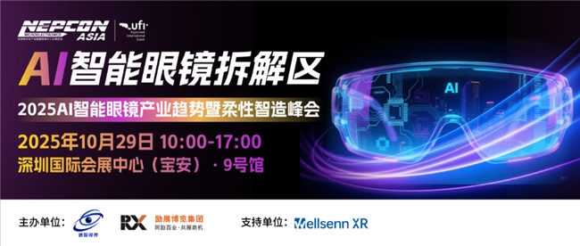 本届展会聚集影目、谷东、唯酷、大朋vr等 众多AI智能眼镜终端厂商汇聚,立体呈现从光学技术 、芯片与计算能力、传感器、交互技术、电池技术、轻量化材料等核心部件到终端应用的前沿新品,为企业与广大观众产品创新及研发提供更多的思考。展区配有2025   AI智能眼镜产业趋势暨柔性智造峰会 ,多位AI智能眼镜知名企业领袖及代表,深入分析智能眼镜产业生态及柔性制造技术,为广大观众揭秘智能眼镜产业技术底层逻辑与发展趋势,撬动智能眼镜蓝海商机!