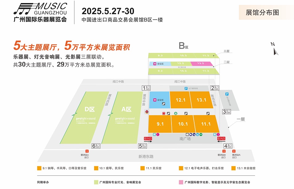 第21届广州乐器展Music Guangzhou将于2025年5月27-30日在中国进出口商品交易会展馆B区一楼举办。展会将开设5大展厅、50000平米的主题展区,以更广阔的展示空间助力行业拓展新生态,寻求高质量发展新机遇。